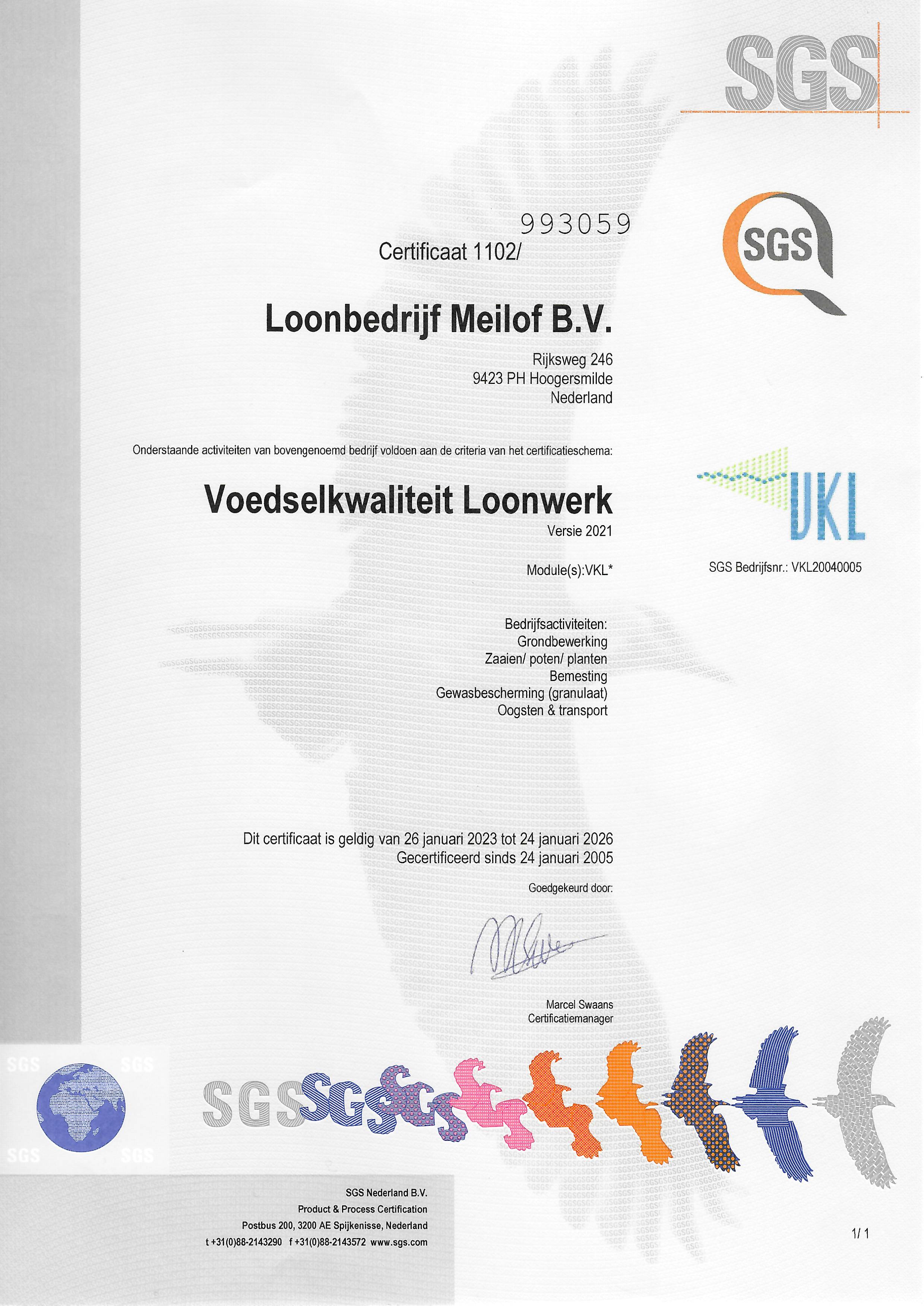 Voedsel kwaliteit loonwerk (VKL certificaat) :